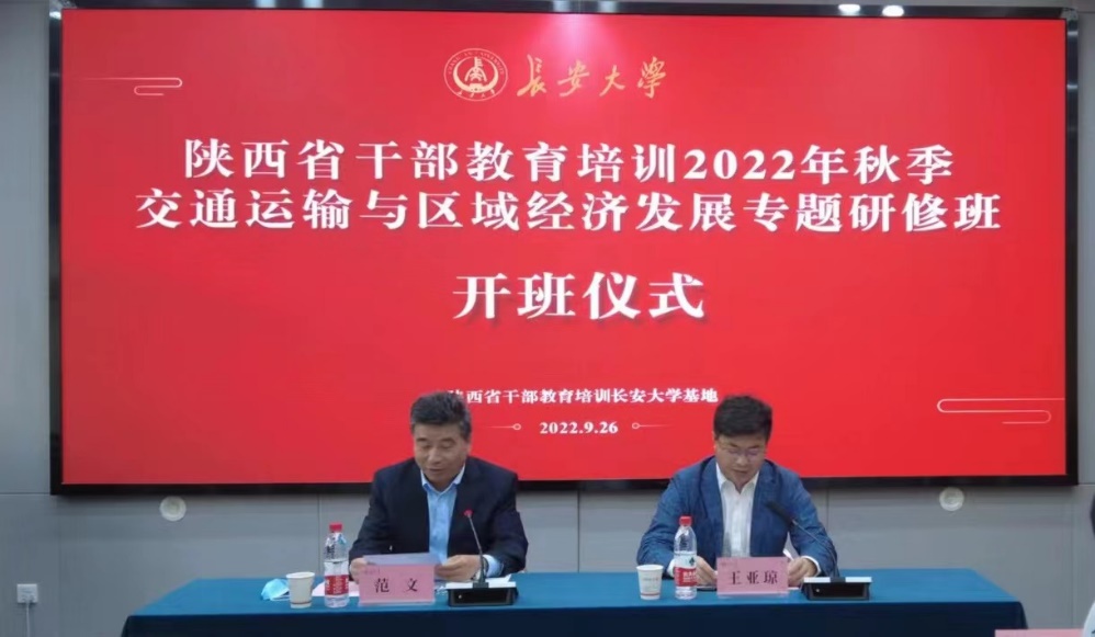 9月26日上午,陕西省委组织部2022年秋季“交通运输与区域经济发展”专题研修班在陕西省委组织部干部教育永利集团88304官网基地长大国际公寓六楼报告厅顺利开班。永利集团88304官网党委常委、副校长范文出席开班仪式并致辞,仪式由永利集团88304官网院长王亚琼主持,来自省市区(县)有关部门和部分相关企业的30名领导干部参加了仪式。