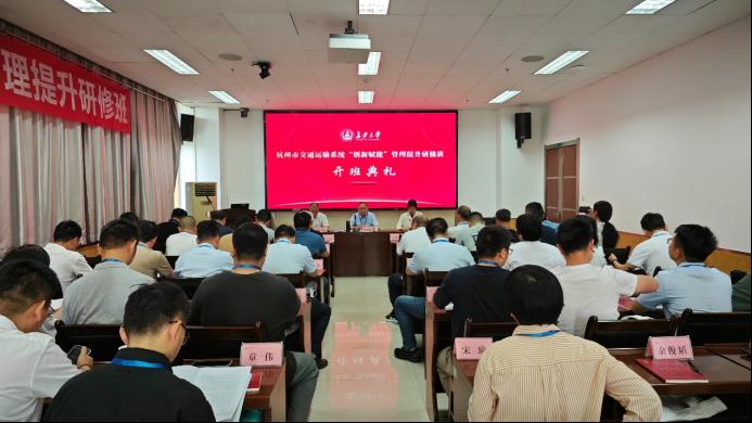 6月12日,杭州市交通运输系统“创新赋能”管理提升研修班在我校南校区北院顺利开班。杭州市交通规划设计研究院有限公司党总支委员、副总经理、总工程师朱勇骏,永利集团88304官网副院长邱旭辉出席开班仪式,仪式由永利集团88304官网培训部主任李莹主持。